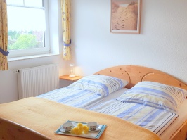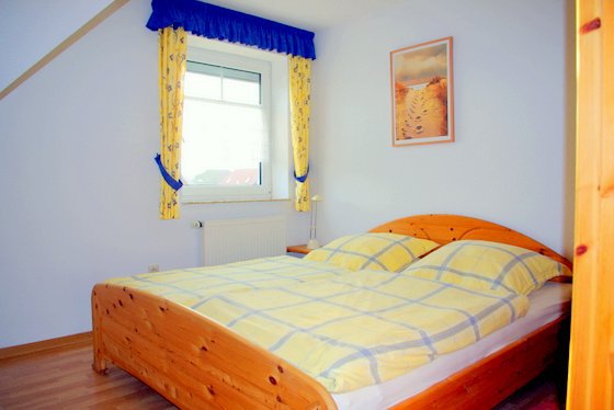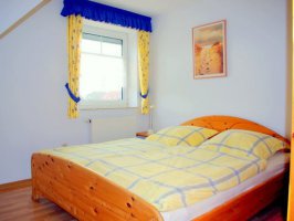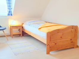 Im Obergeschoss befinden sich drei Schlafzimmer. Ein Zimmer mit Doppelbett, ein Zimmer mit Einzelbett, ein weiteres Zimmer mit Einzelbett und bei Bedarf mit einem Zusatzbett. Für kleinere Kinder steht für unsere Gästen ein Reisekinderbett bereit. Desweitern befindet sich dort ein Duschbad mit zusätzlichem WC.